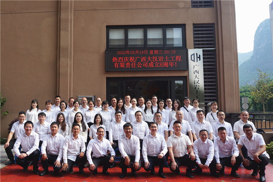 2014年5月18日至2022年5月18日,從官橋村到麒麟灣,從測繪乙級,到勘察甲級,再到地基基礎一級,大漢巖土歷經八年的磨礪,豐收著創(chuàng)業(yè)的碩果,不忘初心,砥礪前行。我們帶著微笑走過風雨,在風雨中筑夢巖土,我們揮著汗水努力前行,在奮進中筑就巖土之脊梁。在公司董事會的帶領下,大漢巖土披荊斬棘,斗志昂揚,歷經八載春秋破繭成蝶,華麗蛻變。大漢巖土的八年,是厚德載物,拼搏奮進的八年,是誠實守信,勇于創(chuàng)新的八年。